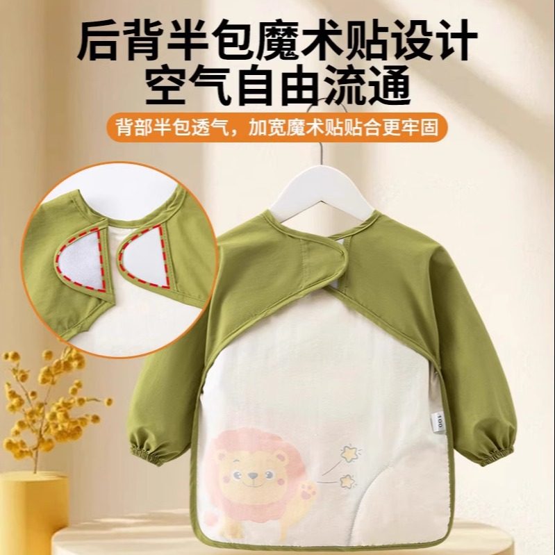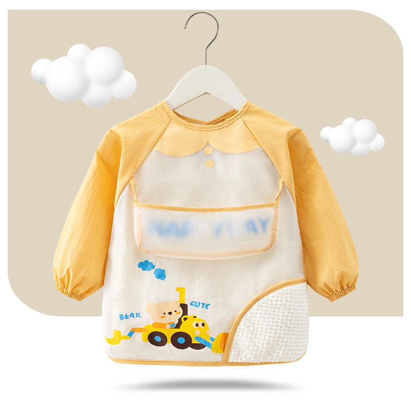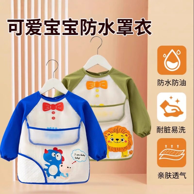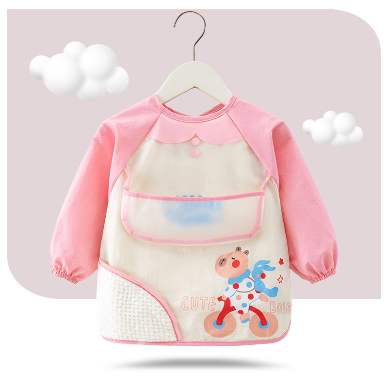 婧麒儿童罩衣春秋冬宝宝防水防脏吃饭围兜长袖卡通婴儿饭兜反穿衣