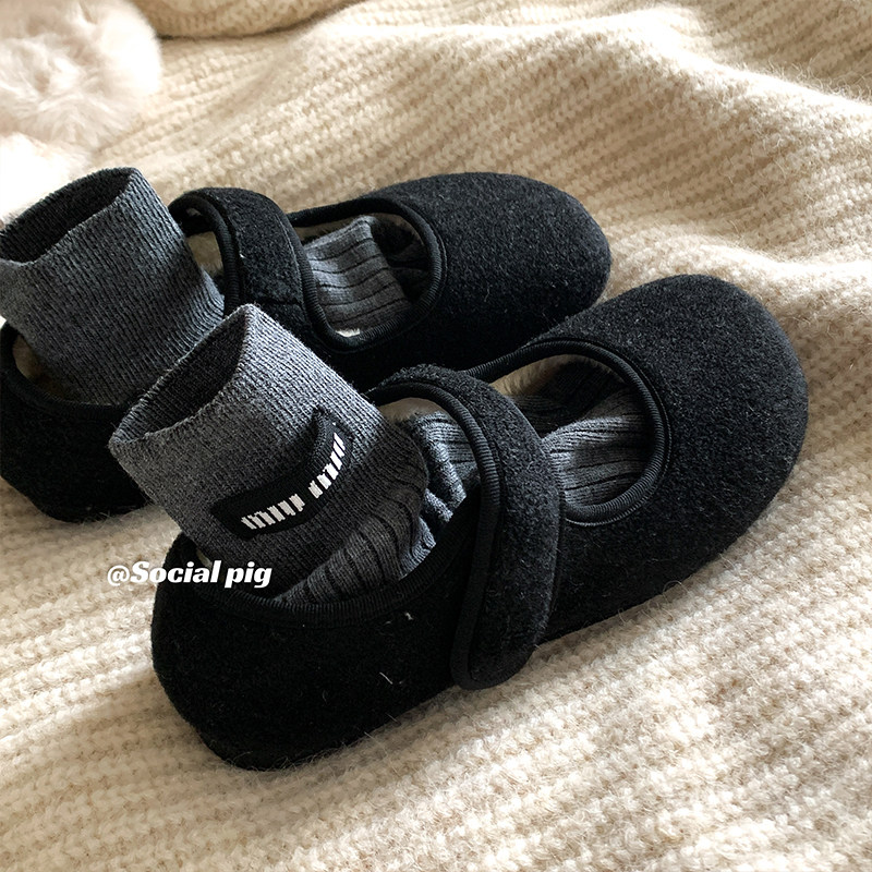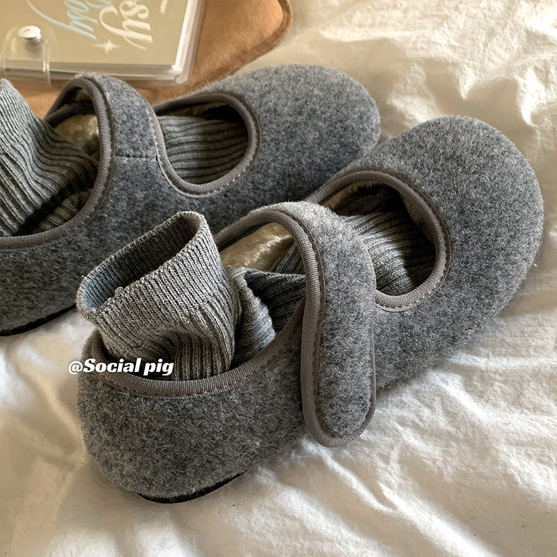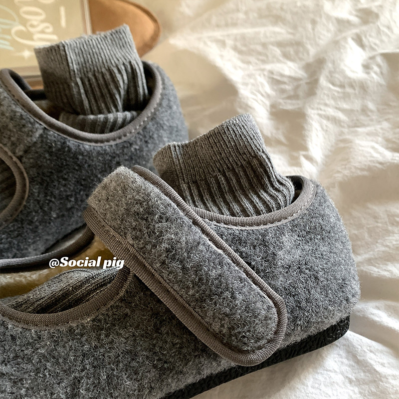 灰灰的~很温柔高级!毛毛鞋女外穿秋冬保暖平底玛丽珍加绒棉单鞋