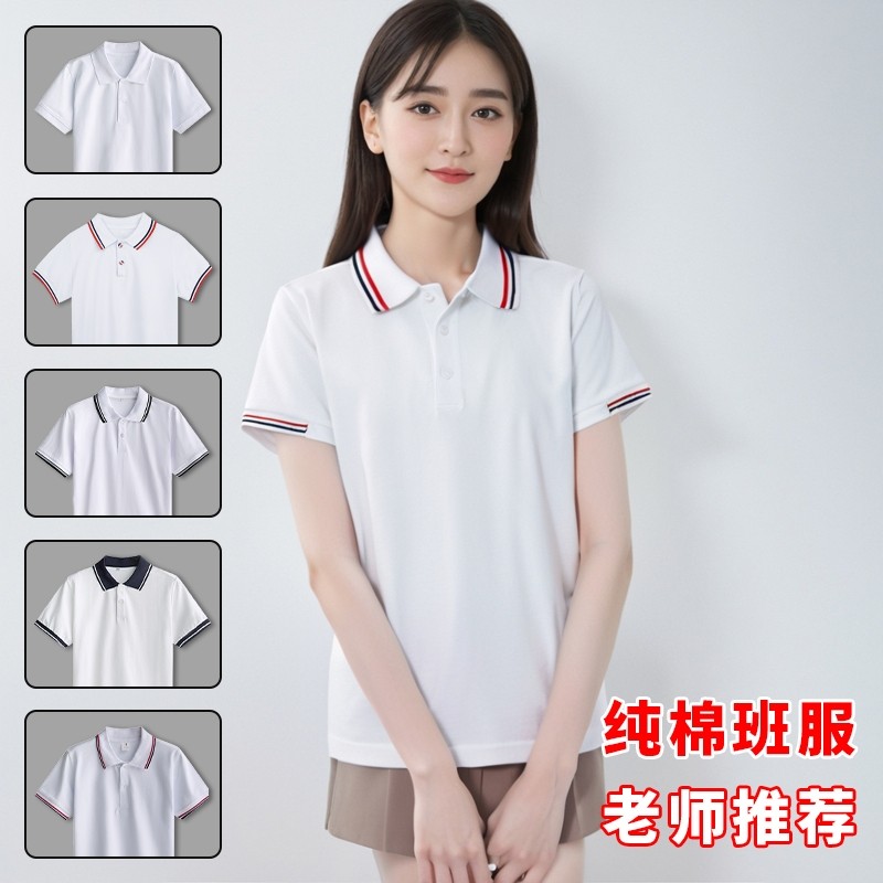 夏季校服polo衫儿童中小学生白色T恤短袖运动班服女童高中生上衣