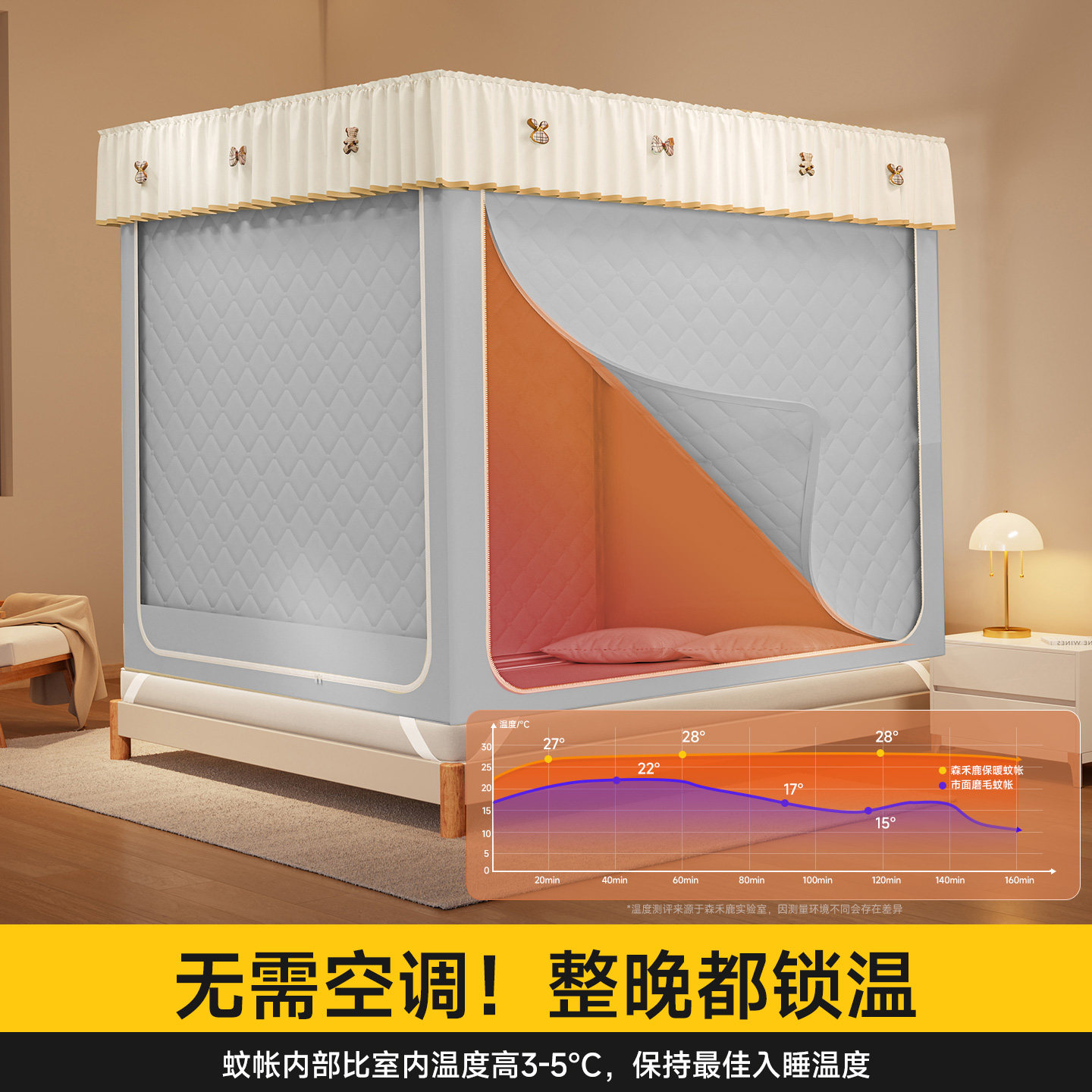 加厚防寒保暖床帐挡风床帘回底公主风蚊帐卧室家用抗菌保暖床幔