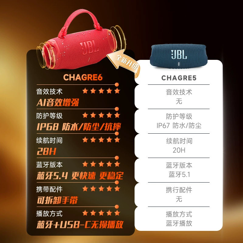 【自营】JBL音响CHARGE6冲击波六代防水户外便携大音量蓝牙音箱