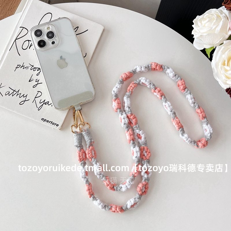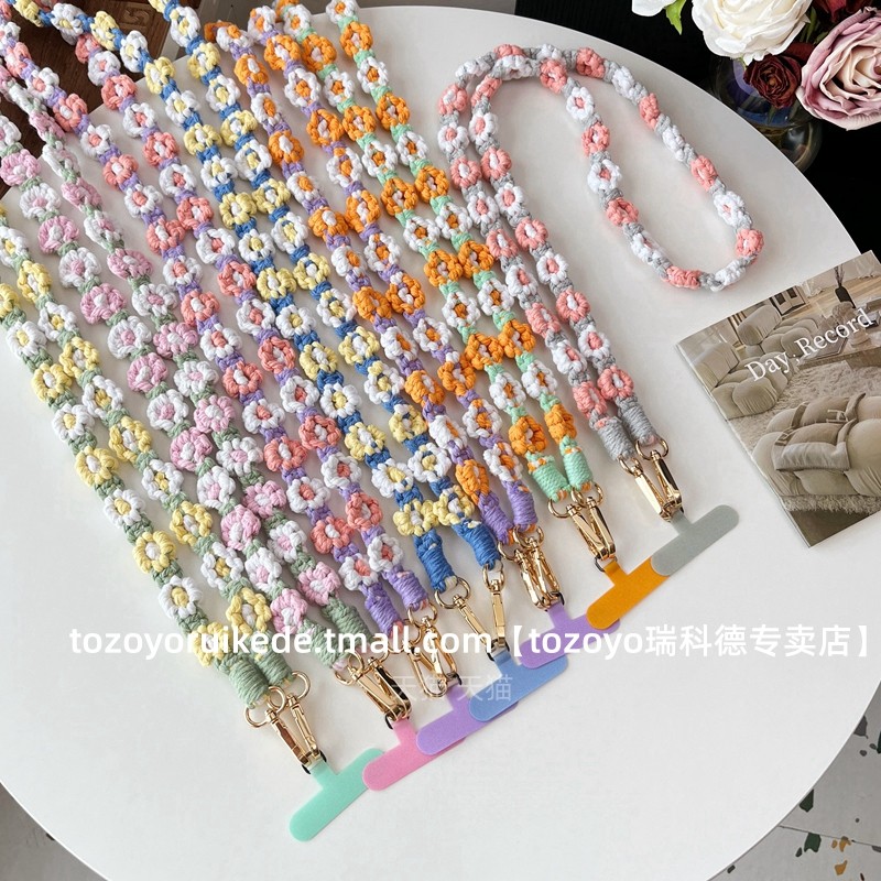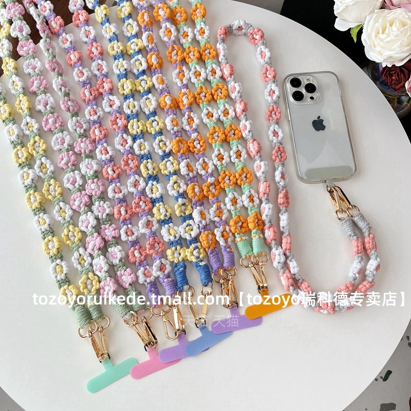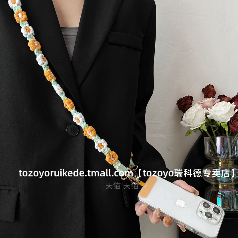 手工编织手机挂绳斜挎可背小雏菊花毛线背绳防丢宽版背包电话手腕绳高端带子包包替换背带挂件卡片夹片贴片女