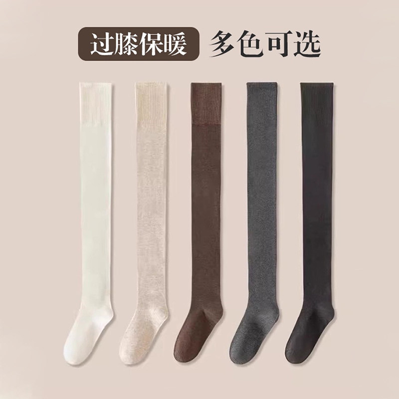 过膝袜子女高筒袜秋冬季加绒加厚保暖大腿纯色冬天半截长筒袜膝盖