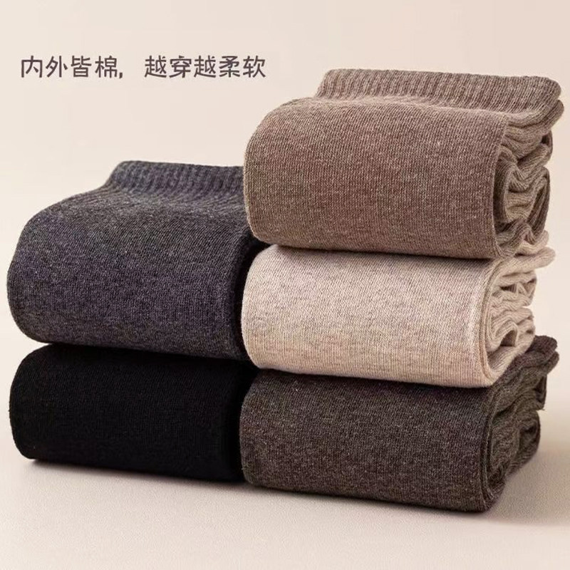 华山泉男袜子秋冬保暖子吸湿排汗长筒螺纹耐磨棉质刺绣商务黑A06C
