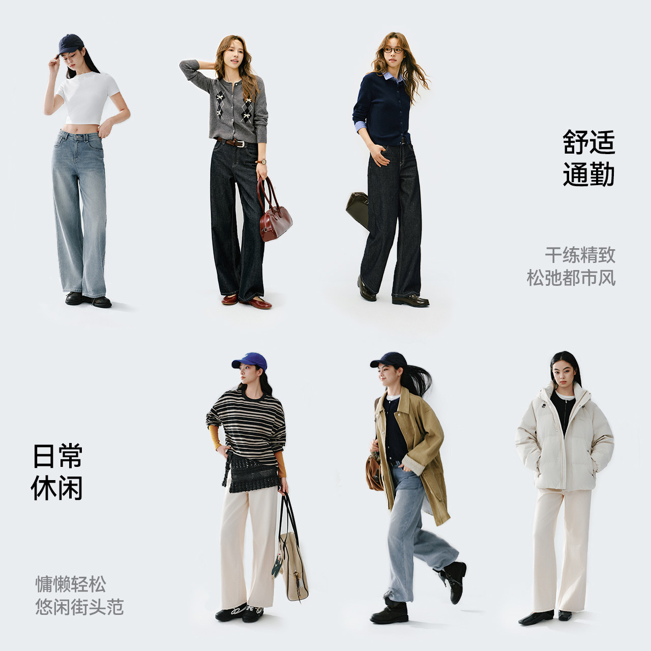 森柔牛仔|商场同款森马牛仔裤女翻边长裤2025秋季新款宽松阔腿裤
