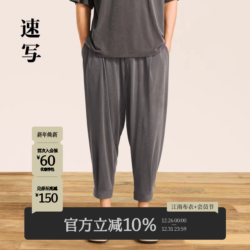 速写男装秋冬新款束脚裤宽松舒适纯色男士休闲裤设计感时尚潮流
