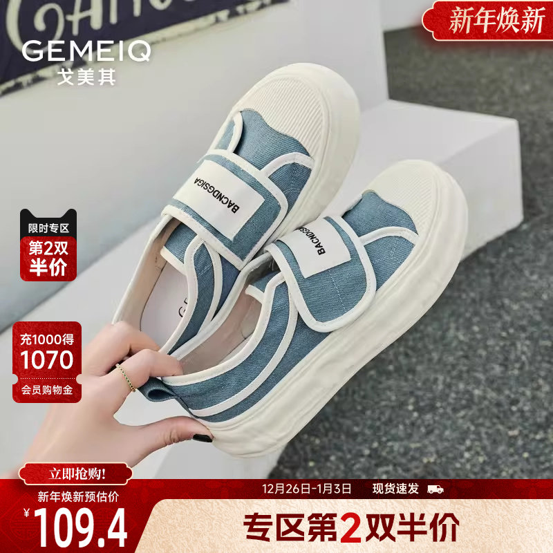 戈美其舒适春季新款韩版魔术贴拼色小白单鞋女平底舒适休闲帆布鞋