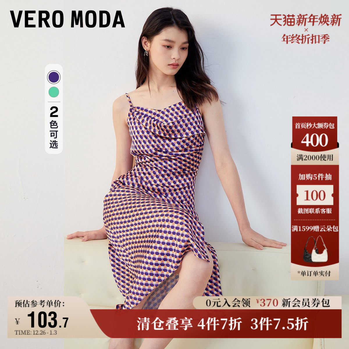 Vero Moda奥莱连衣裙子秋冬清仓优雅气质女人几何图案吊带裙百搭