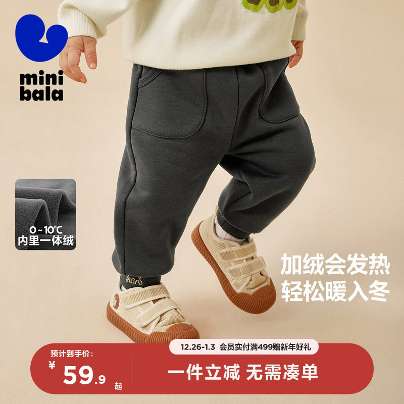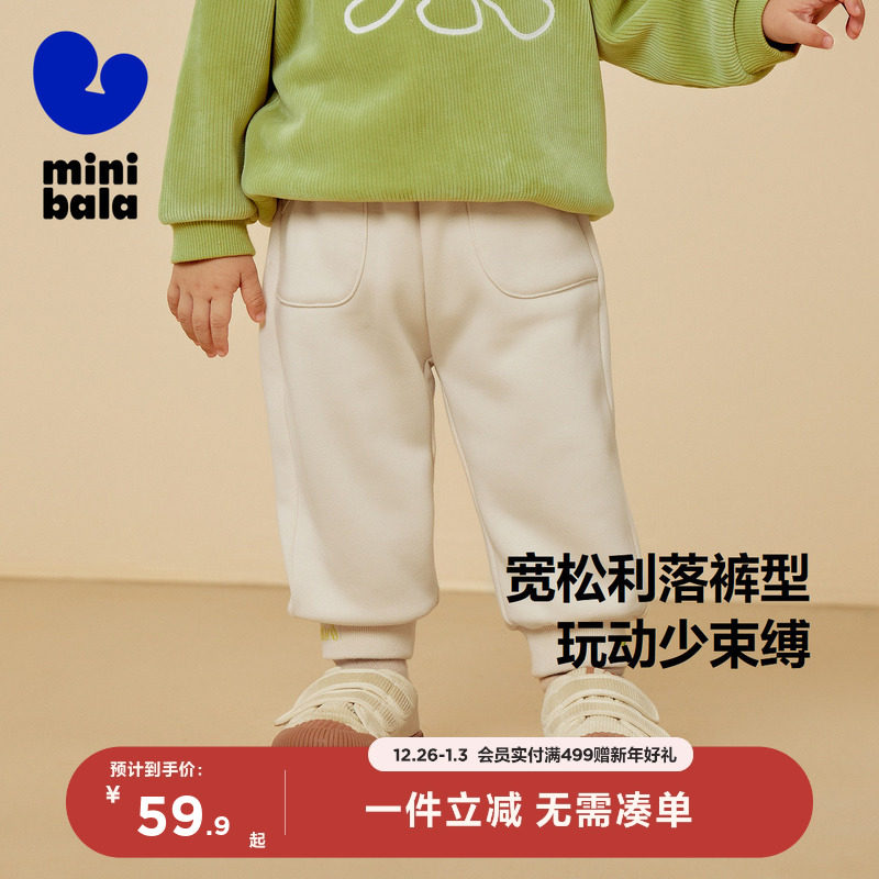 迷你巴拉巴拉男童女童裤子冬装加绒加厚宽松宝宝卫裤儿童长裤