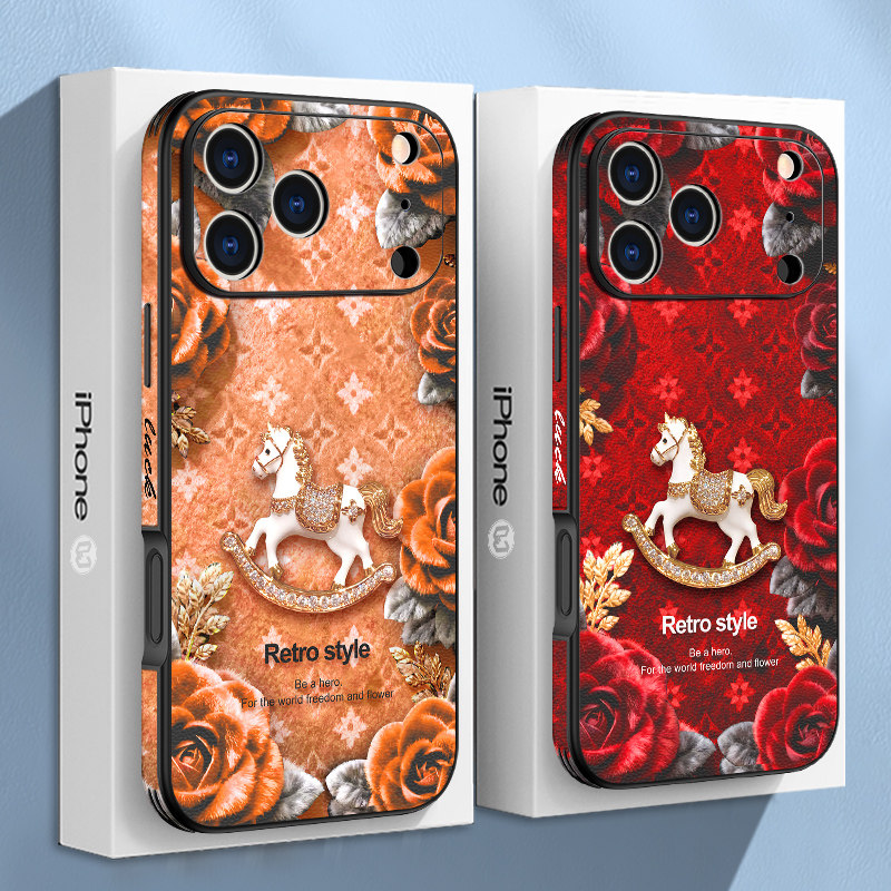 高贵小金马适用苹果17promax手机壳奢华女款iPhone17pro高档贴皮16pro时尚潮牌15复古14全包防摔plus文艺13套