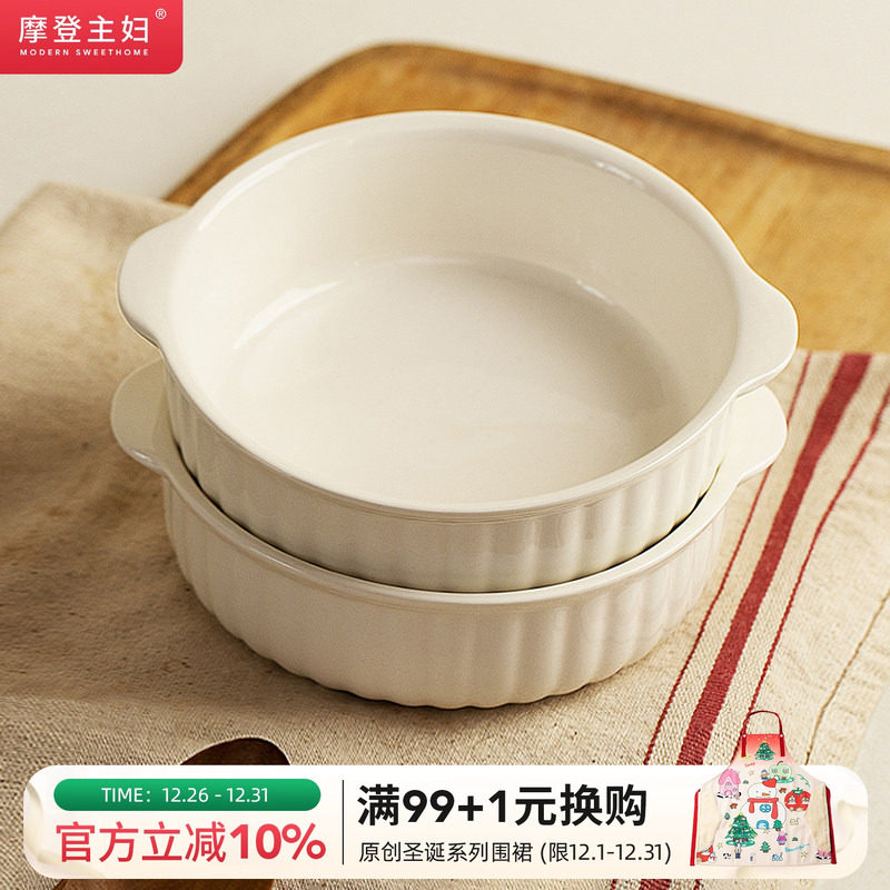 摩登主妇双耳烤碗空气炸锅碗家用2025新款陶瓷烤箱用焗饭碗蒸蛋碗