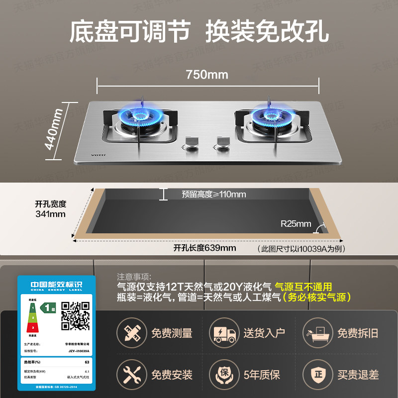 华帝燃气灶i10039A不锈钢煤气灶双灶家用天然气炉灶台液化气灶具