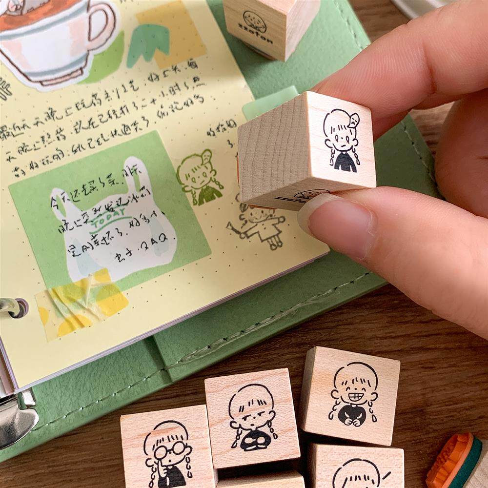 卓大王【阿卓表情动作木制】枫木手帐盖章可爱打卡日常记录