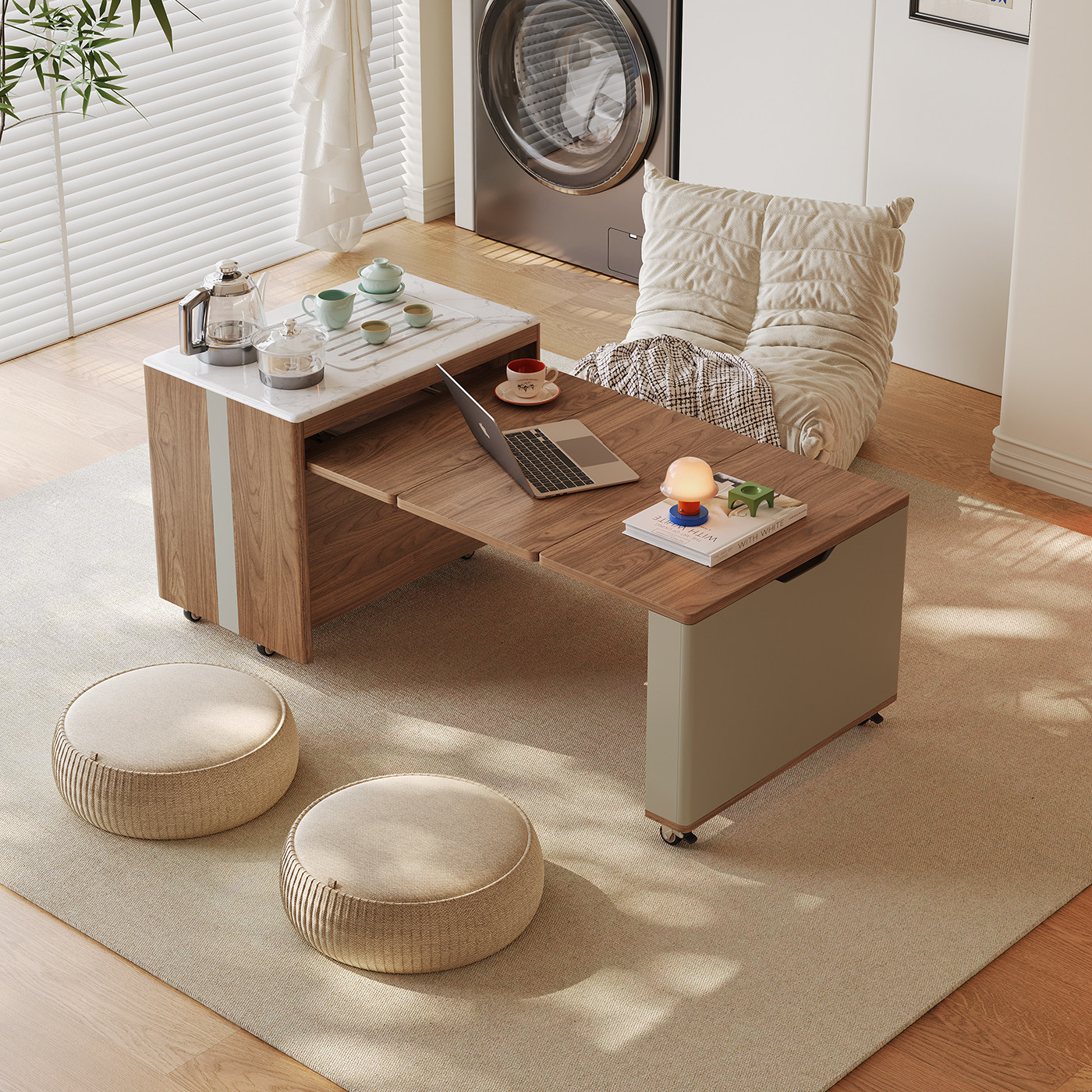 2026新款中古风移动边几伸缩折叠茶几小户型推车沙发边柜客厅茶几