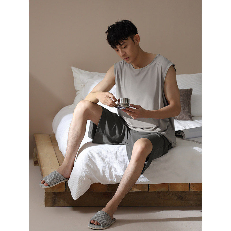 红豆2026新款睡衣男款夏季冰丝莫代尔薄款背心坎肩家居服柔软短裤