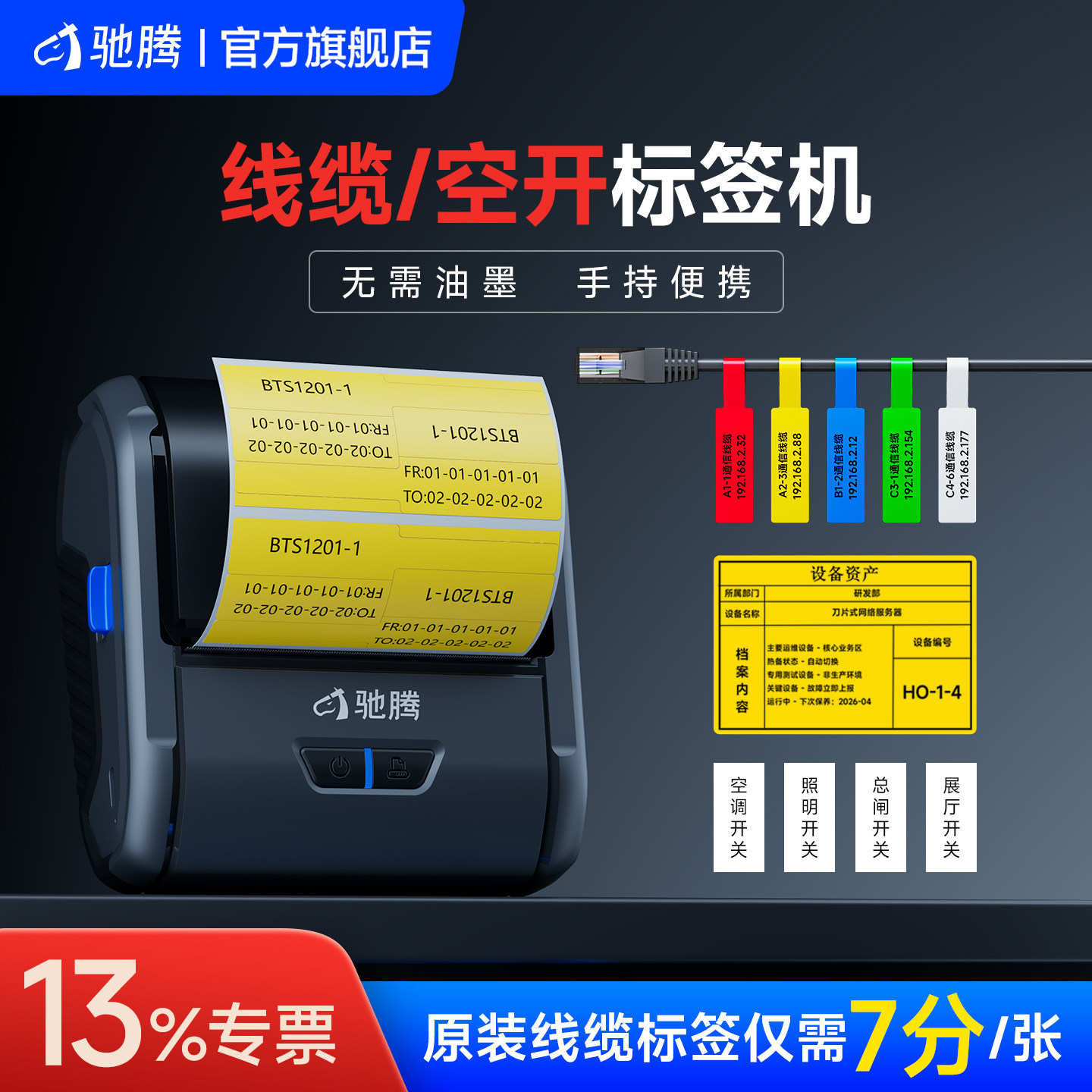 驰腾S1通信线缆标签打印机小型配电箱开关标识贴电缆工程刀型机房网线光纤贴纸打标机手持工业设备P型标签机