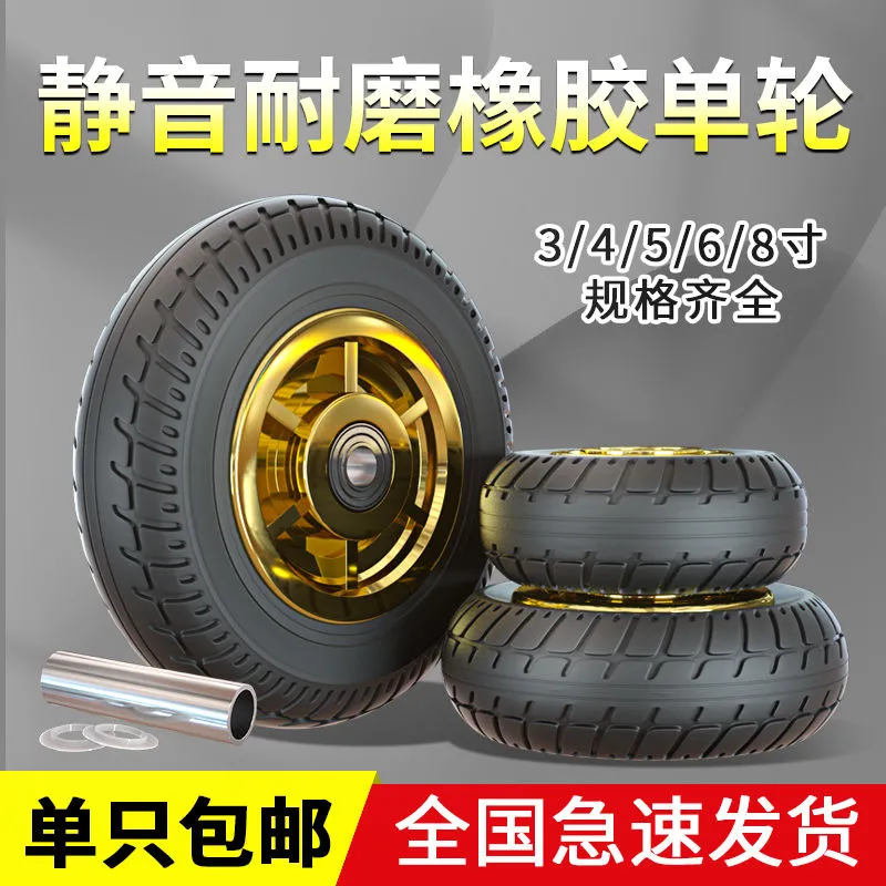 万向轮平板手推车重型轮子橡胶轮单轮尼龙脚轮3寸4寸滑轮承重脚轮