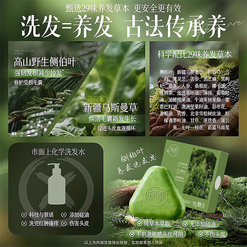 侧柏叶洗发皂洗头新疆乌斯曼草何首乌中药手工固发防断官方旗舰店