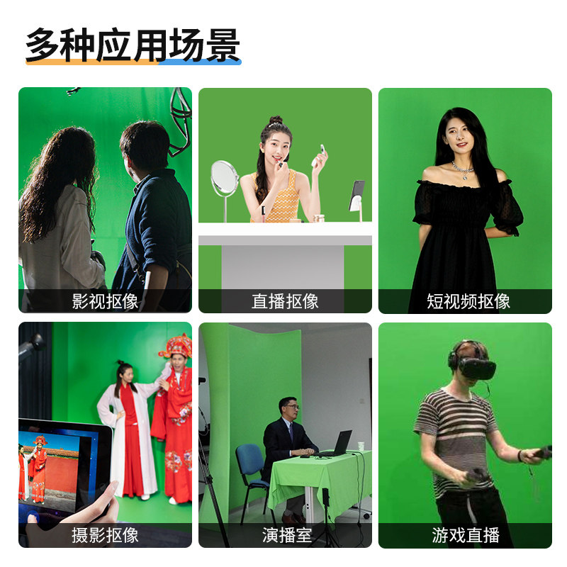 直播间绿幕抠像布加厚专业绿布背景室内影棚拍摄伸缩摄影支架拍照视频抠像软件绿色特效抠图设备地拉幕布