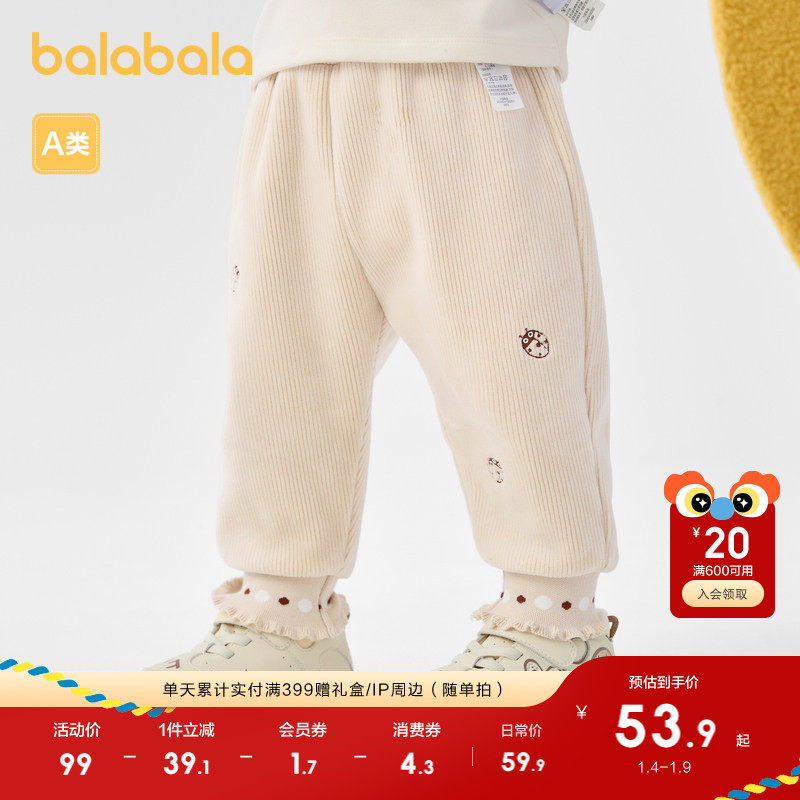 【荣信乐乐趣IP】巴拉巴拉宝宝长裤女童冬季运动裤子可爱加绒保暖