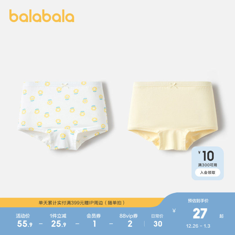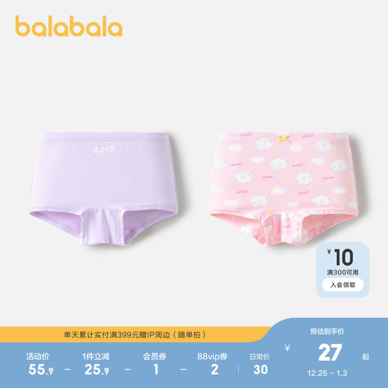 巴拉巴拉女童内裤平角儿童四角短裤亲肤不夹PP两条装舒适柔软萌趣