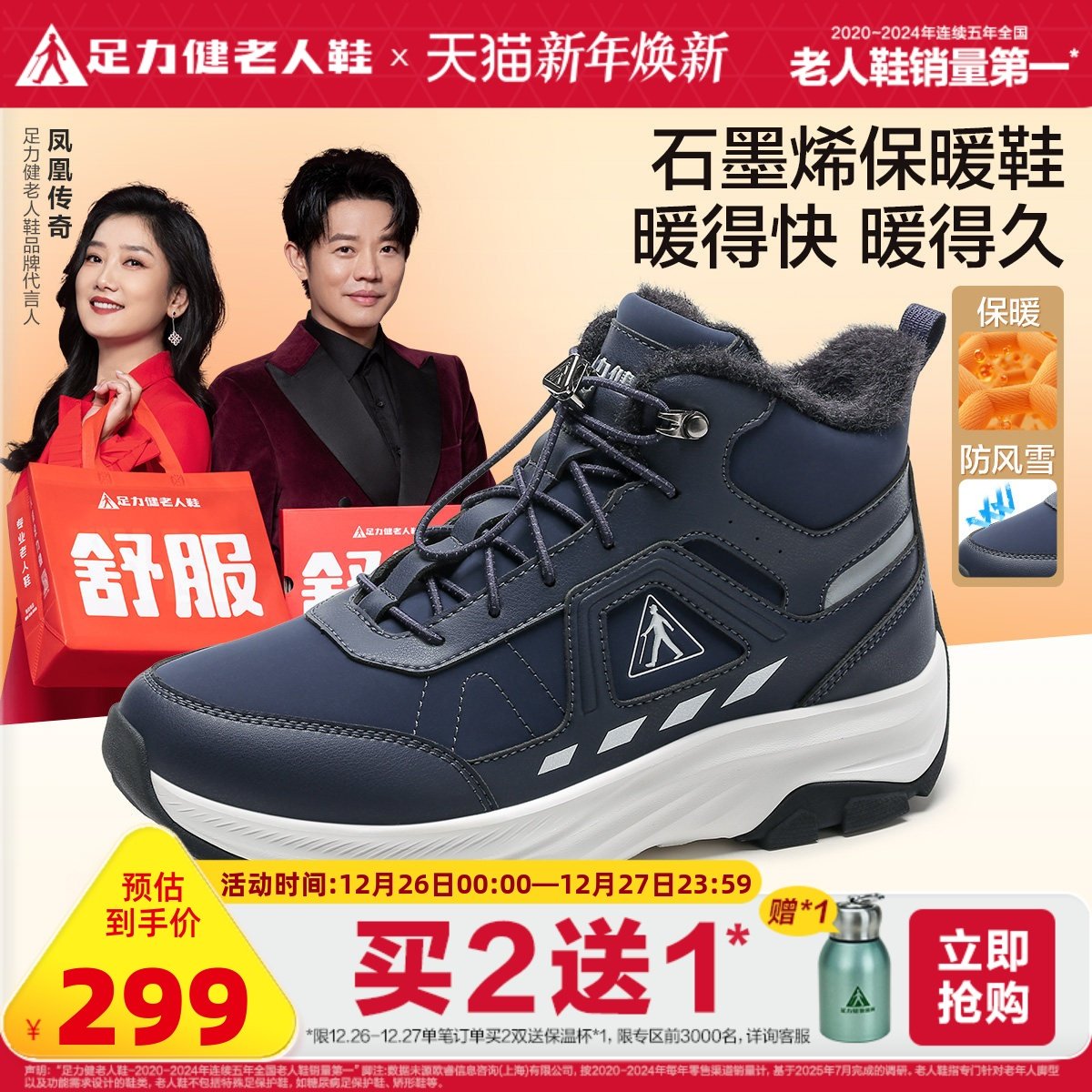 足力健旗舰店2025年冬季新款中老年保暖鞋石墨烯加绒休闲爸爸棉鞋