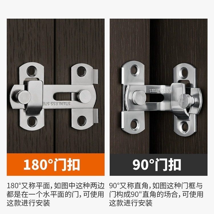不锈钢门栓免打孔门锁卫生间推拉门插销家用卡扣防盗搭扣移门锁扣