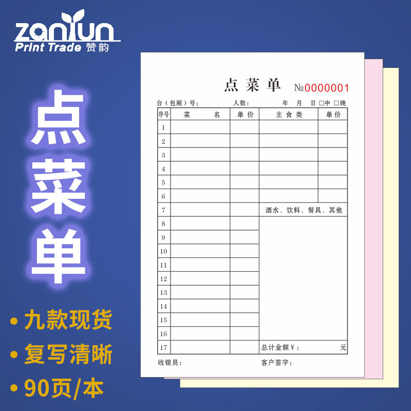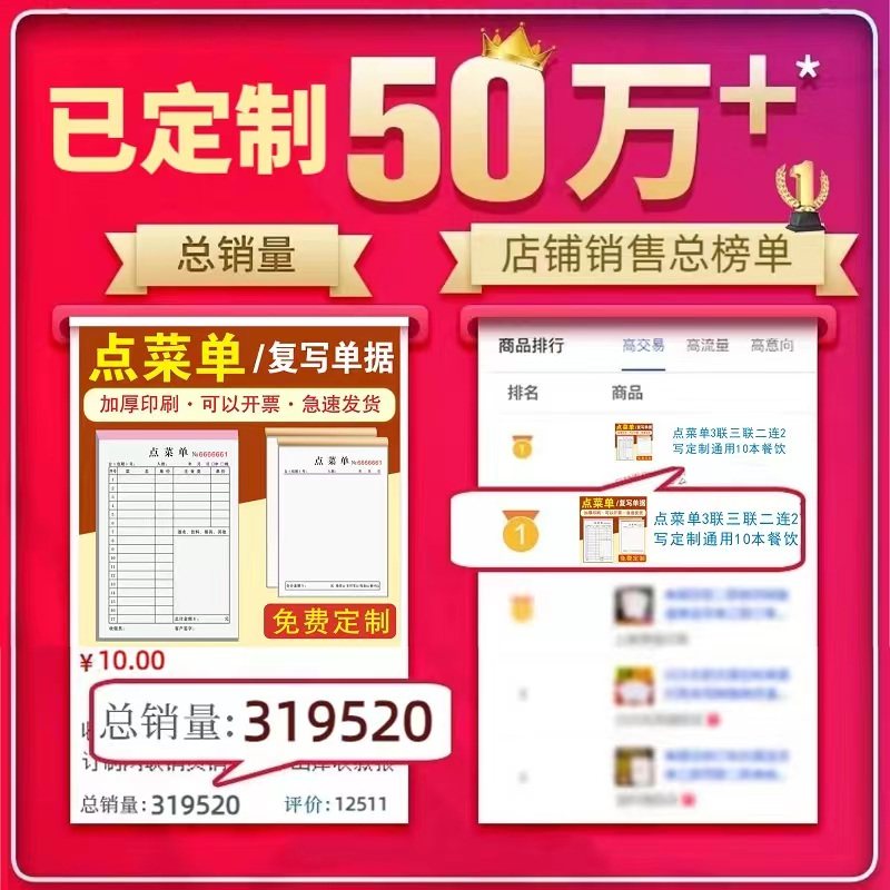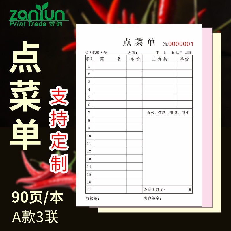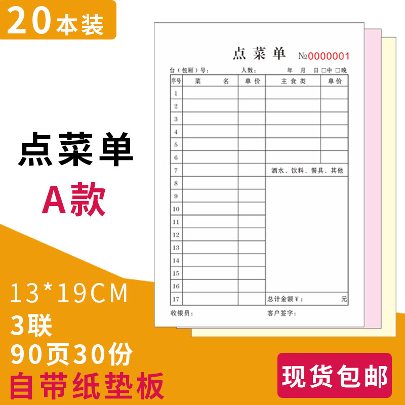 【点菜单】3联三联二连2四联饭店点菜本子手写定制通用10本餐饮专用酒水单复写开单本加菜单烧烤饭馆单据票据