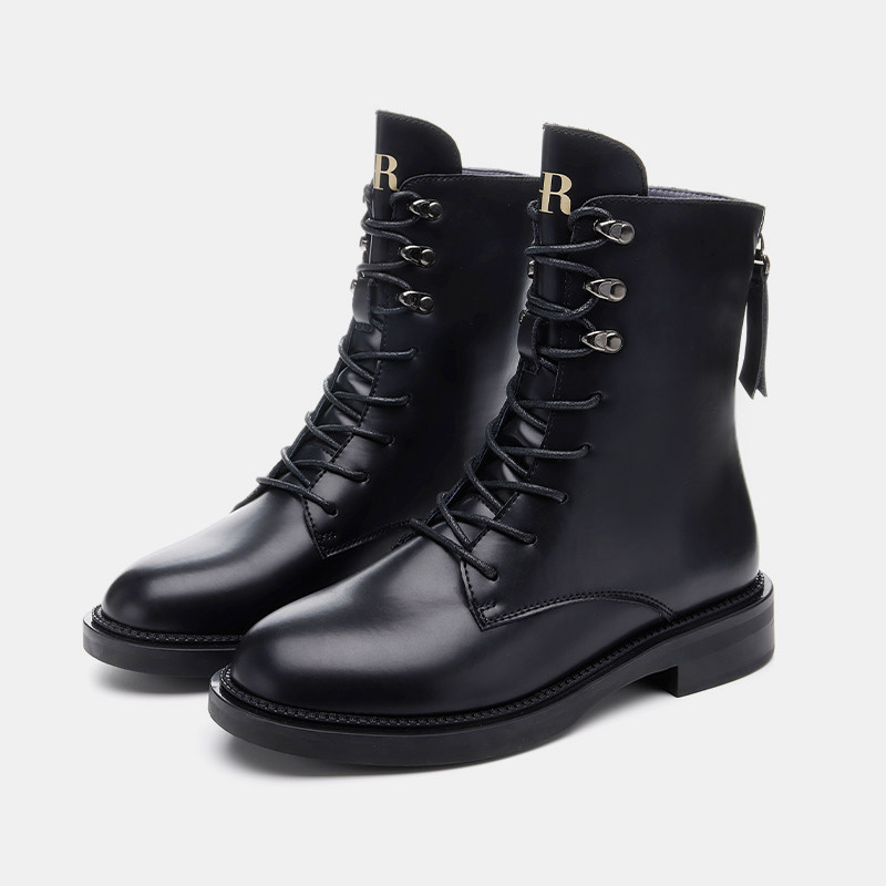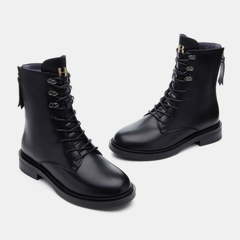 HR赫莲娜女鞋子2025年秋季新款马丁靴时尚百搭中筒后拉链机车短靴