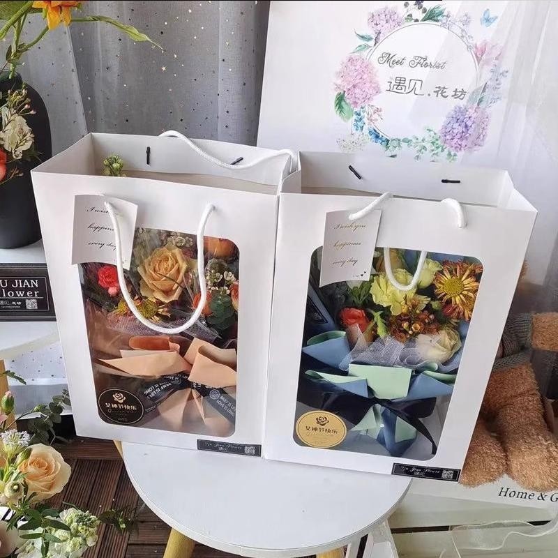 手提礼袋透明橱窗新款开窗鲜花玩偶手提袋教师节礼物包装袋