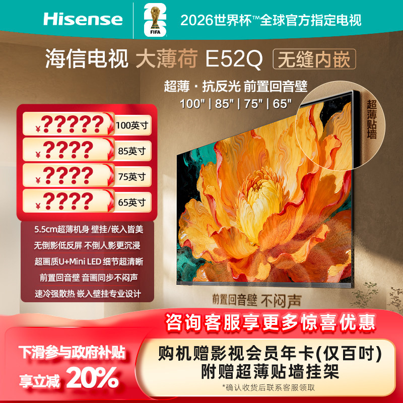 海信电视大薄荷E52Q 超薄贴墙 低反屏 MiniLED 壁纸电视机