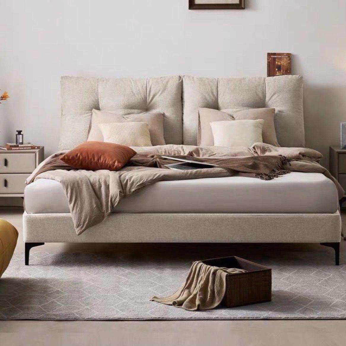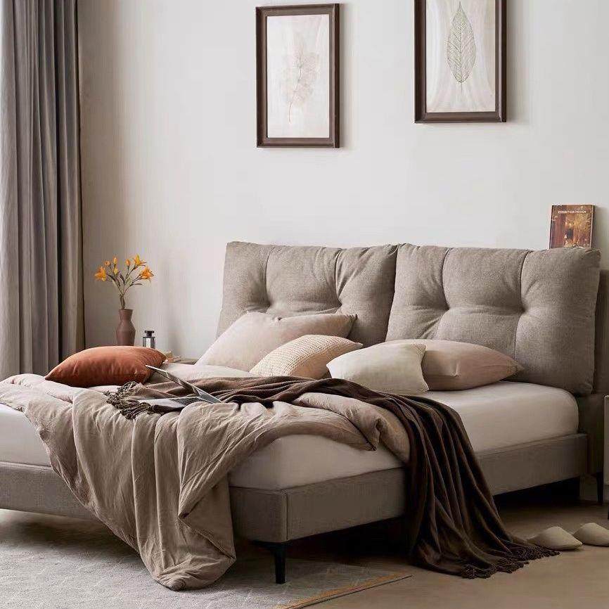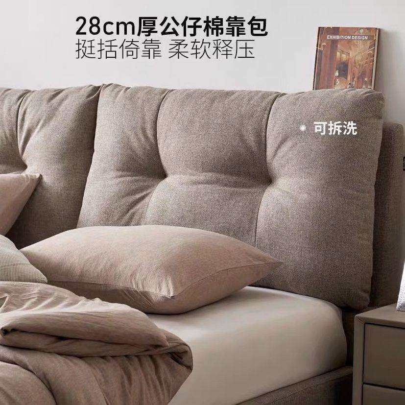 轻奢实木床棉麻布艺床现代简约主卧大床现货1.8x2米1.5米床