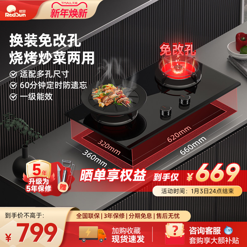 红日燃气灶双灶家用红外线灶台嵌两用免改孔天然气定时炉灶EX16B