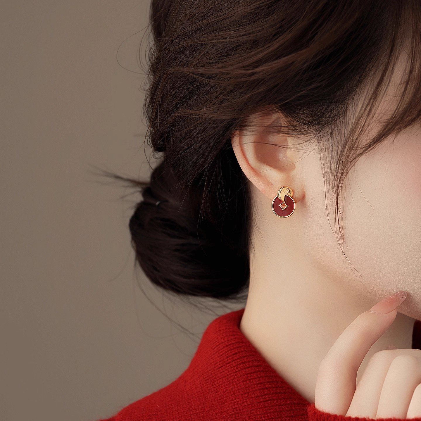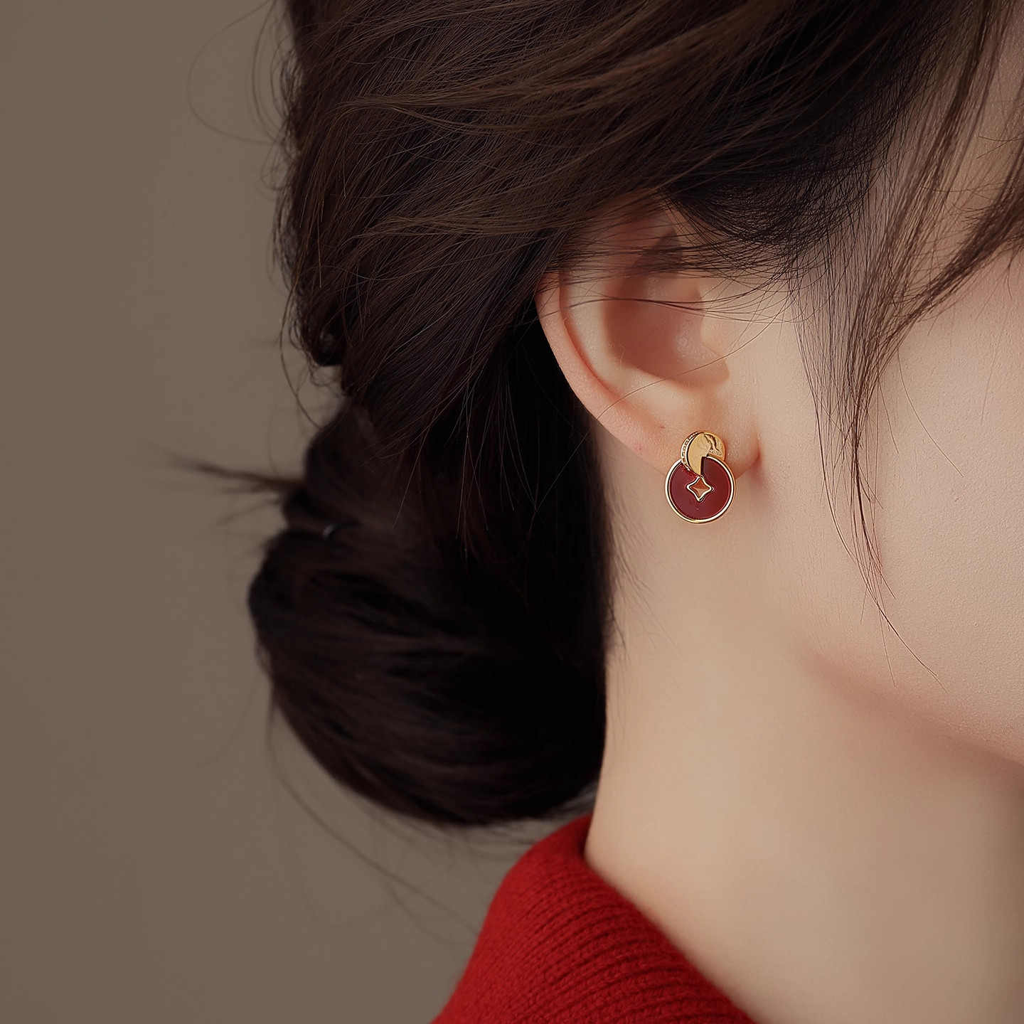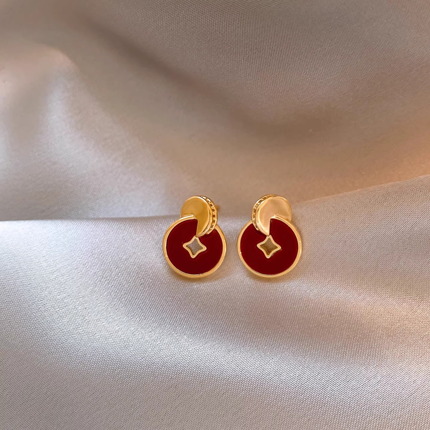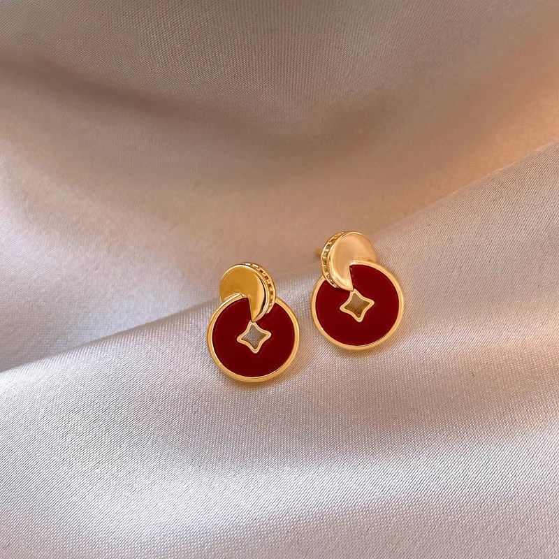 新年马年红色耳钉过年喜庆铜钱耳环生肖马耳饰耳夹无耳洞设计感