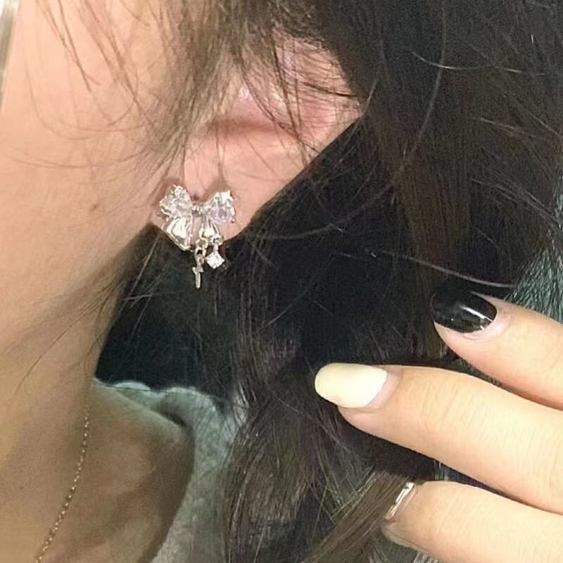 999纯银耳钉女养耳洞耳骨钉小众高级感锆石耳蜗钉水钻耳环银耳饰