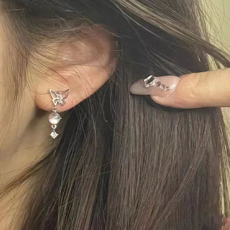 蝴蝶珍珠套装耳钉女轻奢小众高级感耳骨钉耳饰品2025新款爆款耳环