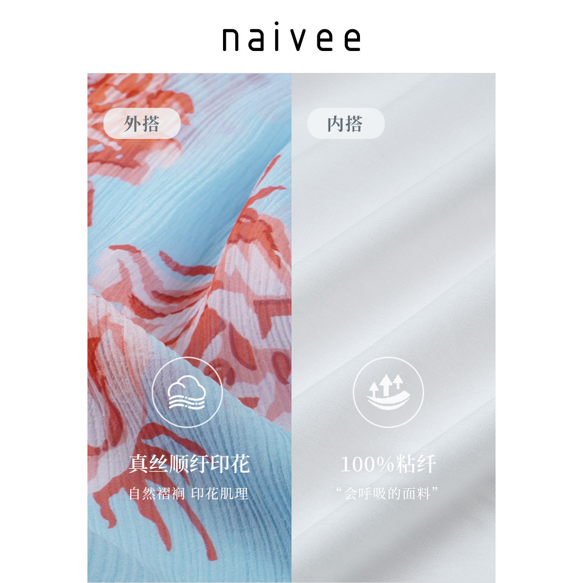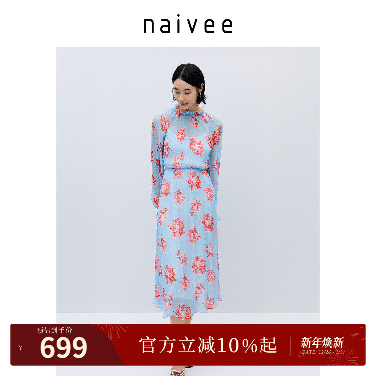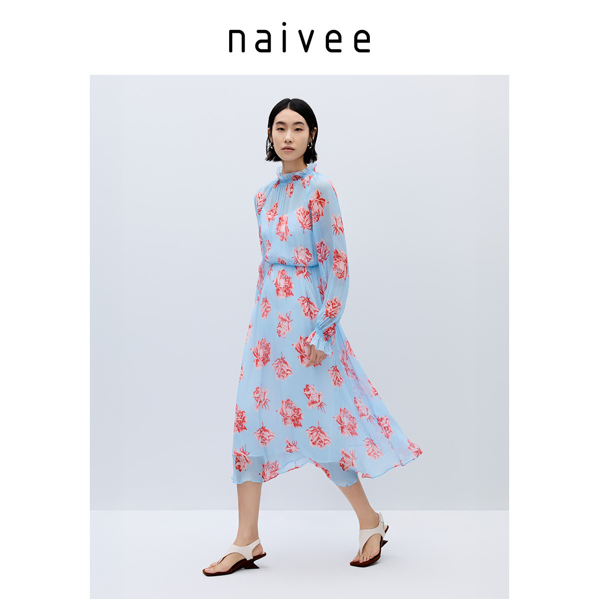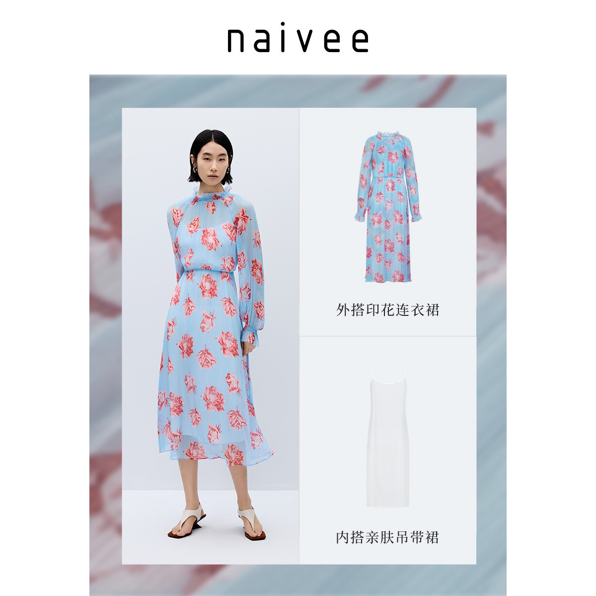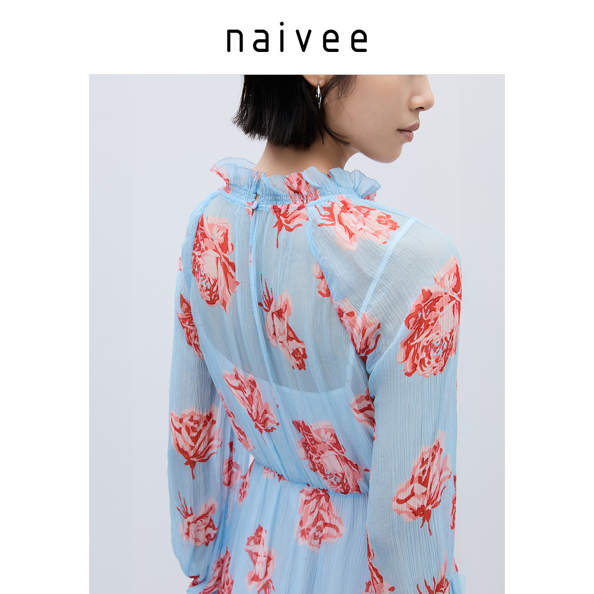 款naivee纳薇2025秋度假仙女裙真丝桑蚕丝X型木耳边长袖连衣裙女