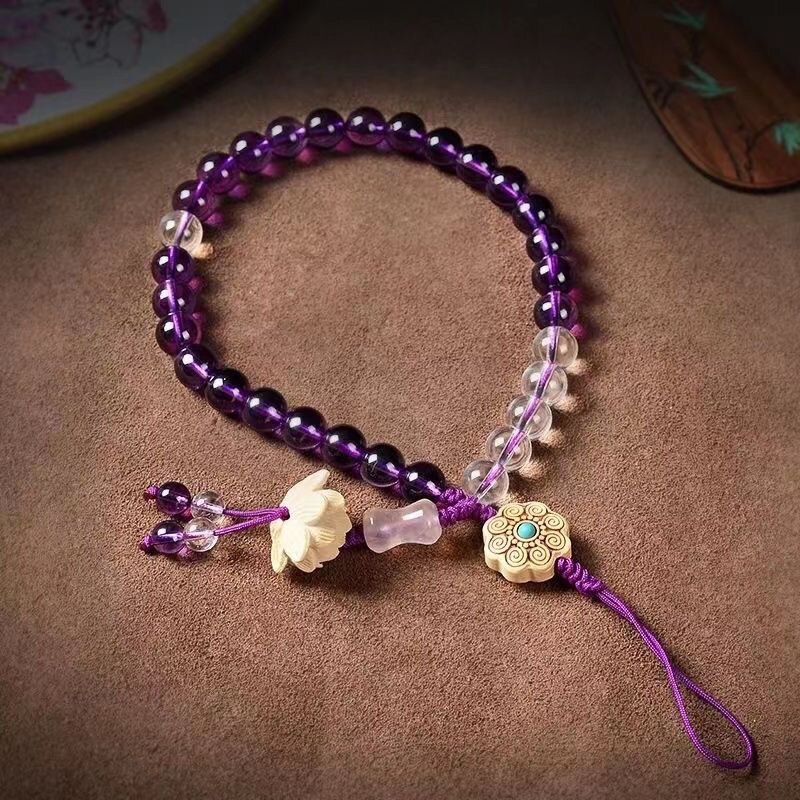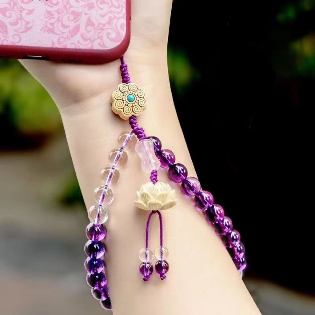紫晶手机壳挂绳串珠手腕链中国风女挂饰短款挂件饰品礼物吊坠礼品