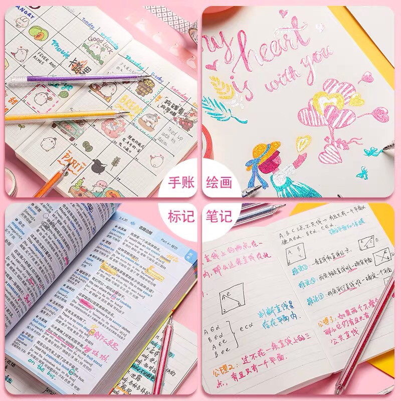 闪光啫喱笔抖音彩色中性笔涂鸭填色荧光珠光亮咖喱手账手帐黑卡纸