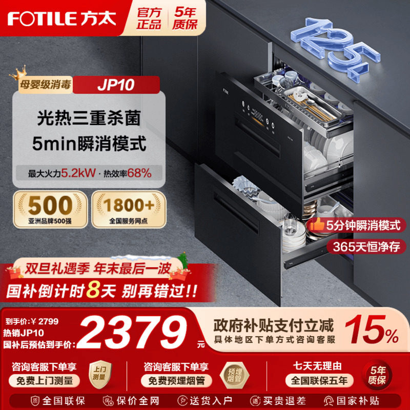 方太JP10光刃消毒柜烘干一体嵌入式碗柜新款厨房家用多功能内嵌式
