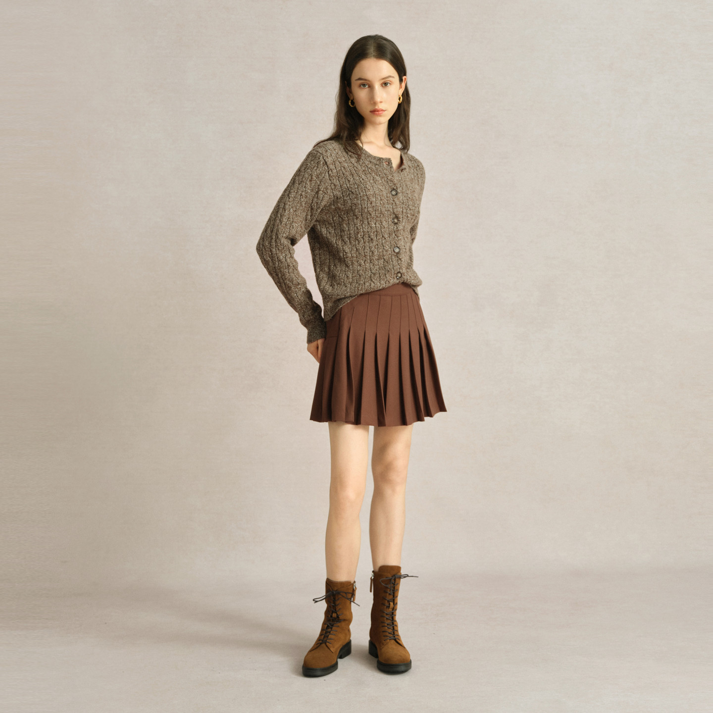 POLOWALK女士百褶裙秋冬季新款纯色百搭半身裙洋气减龄显瘦JK短裙
