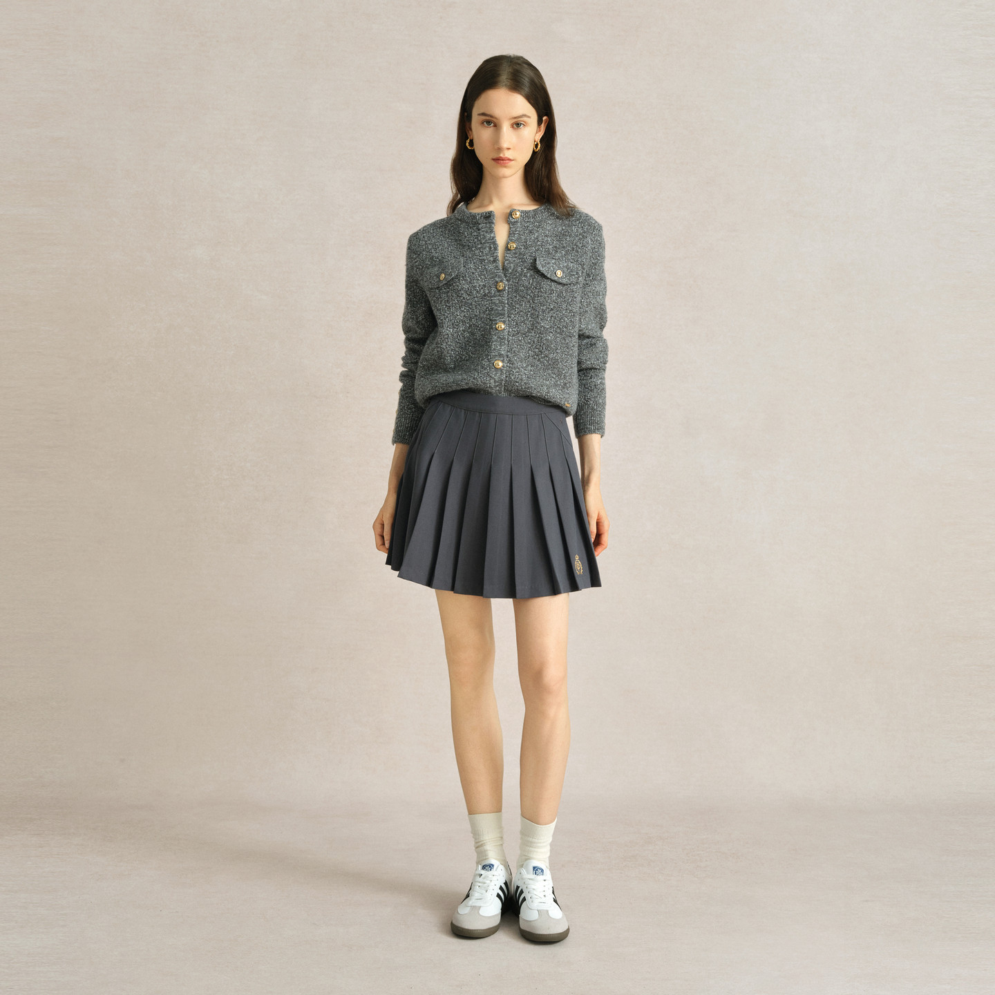 MJ STYLE灰色百褶西装裙女秋冬半身裙高腰休闲大摆a字过膝中长裙