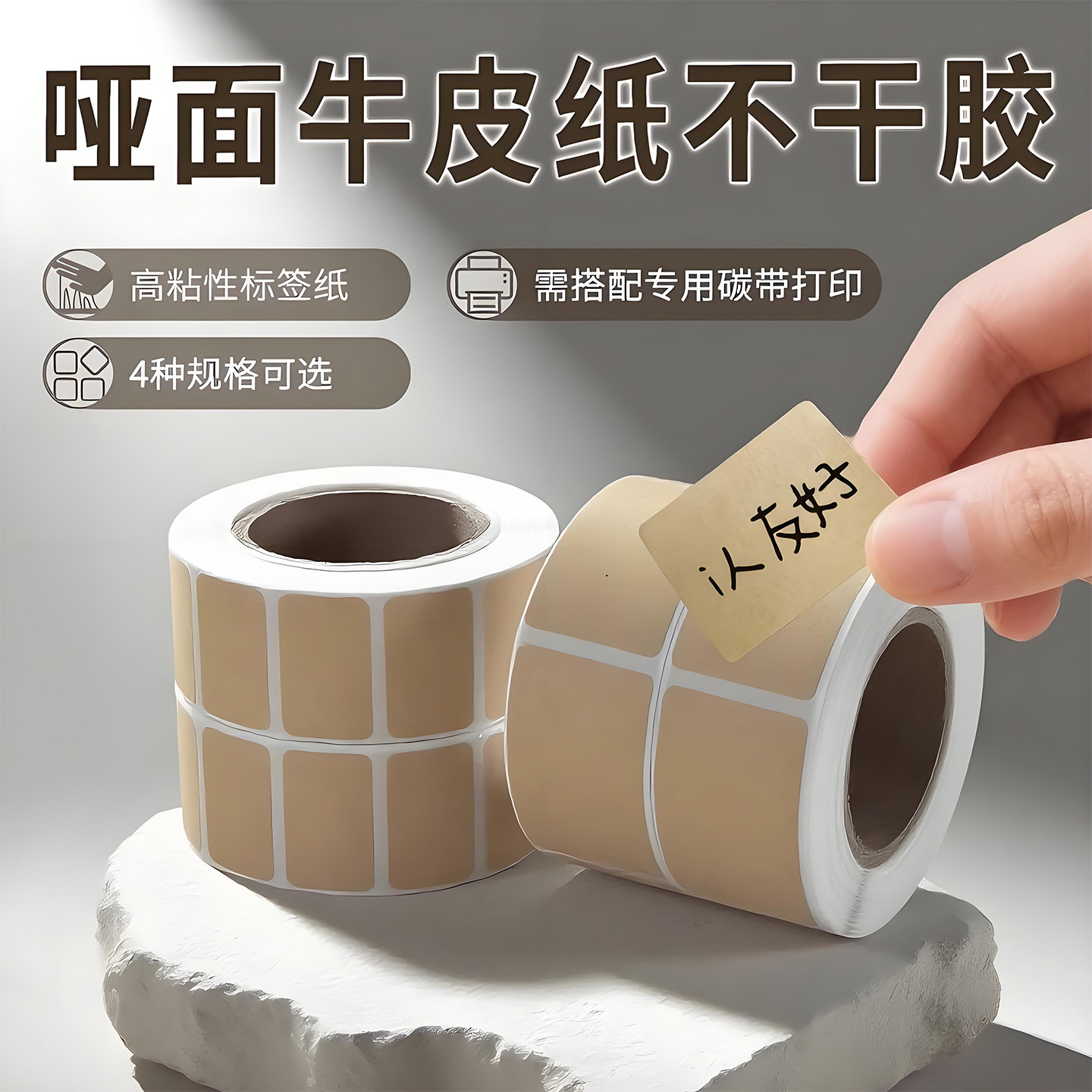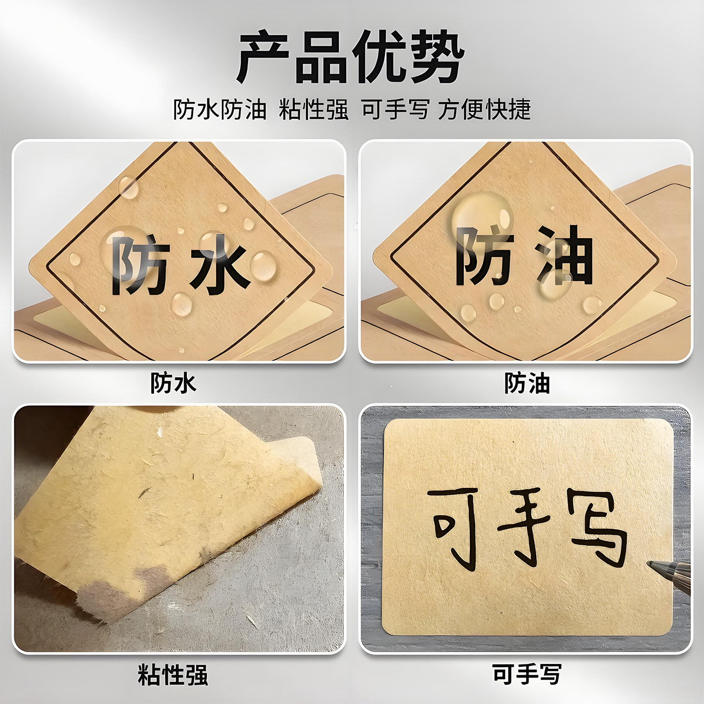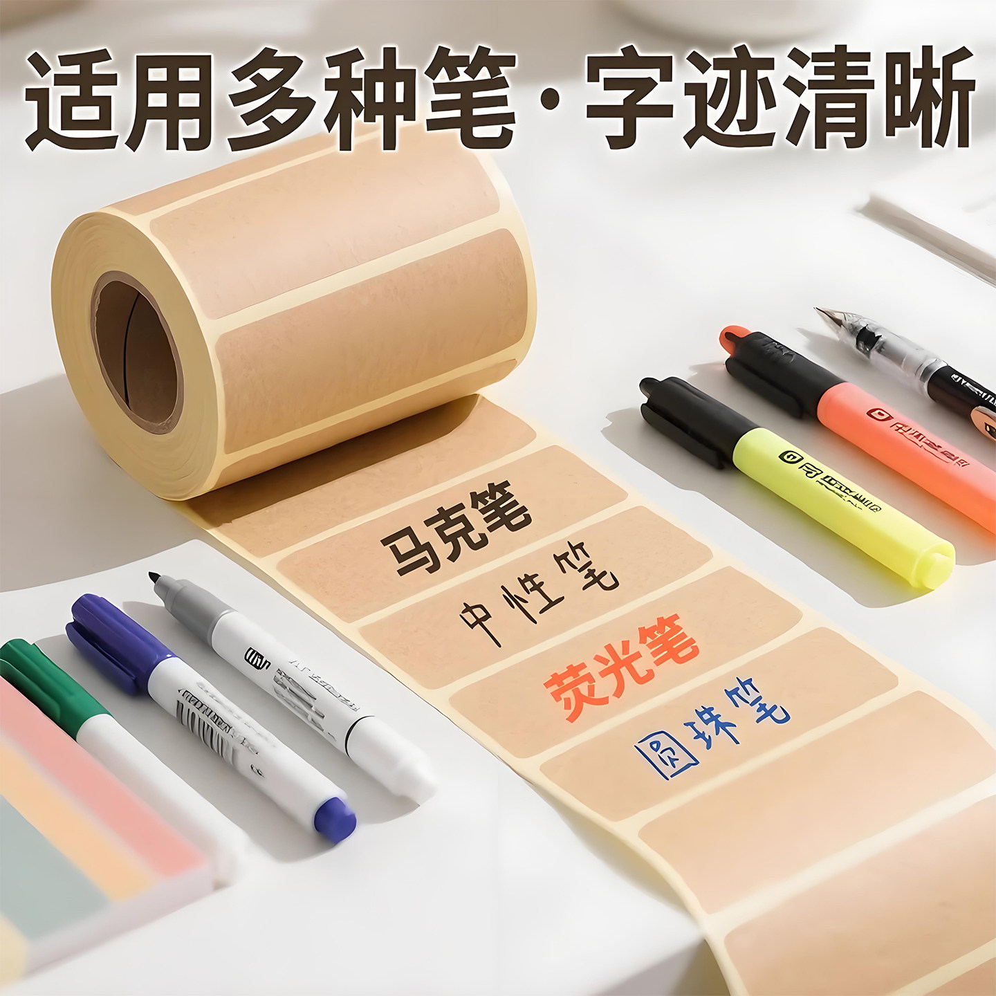 牛皮纸贴纸上门取件可撕防水标签贴自粘便签口取纸姓名记号贴
