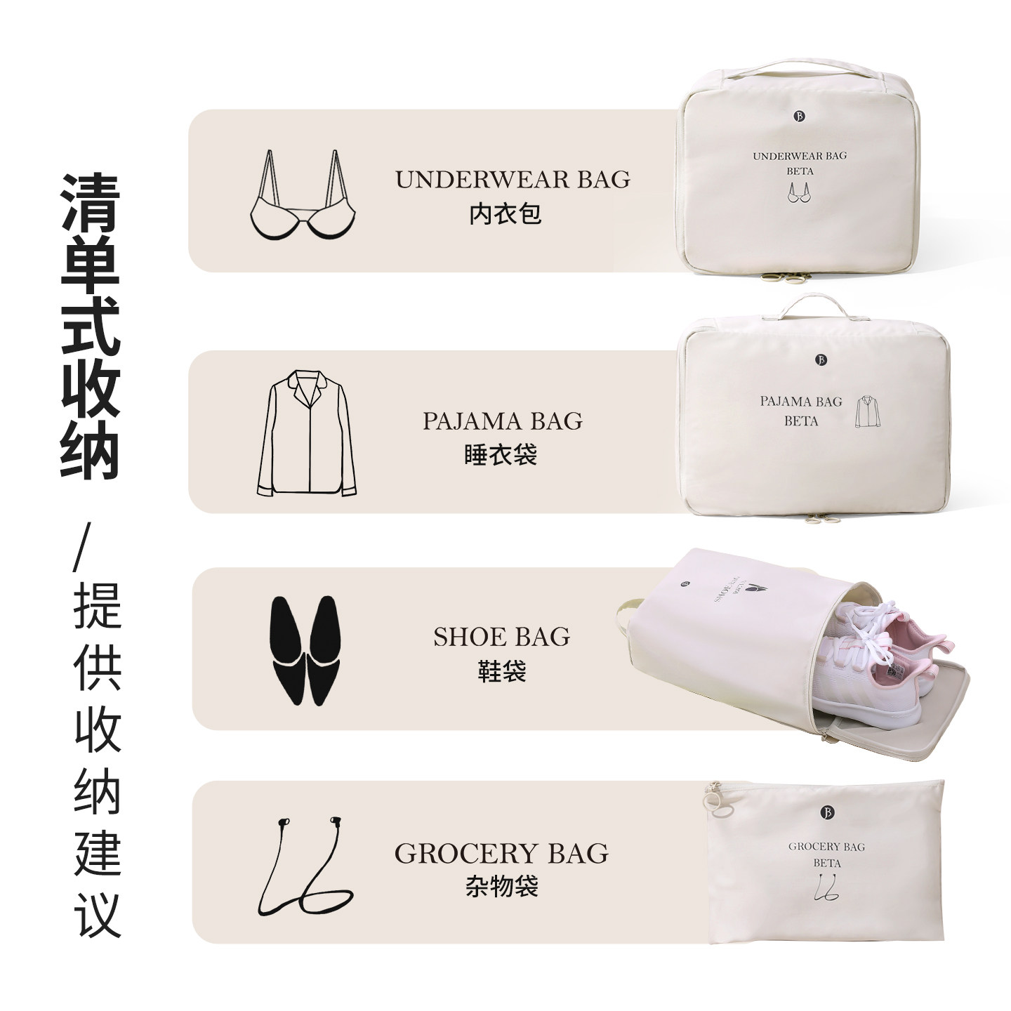 清单式分类收纳 适配20-28寸行李箱 可水洗