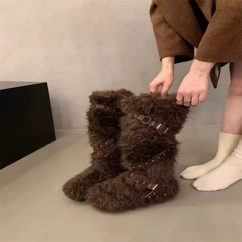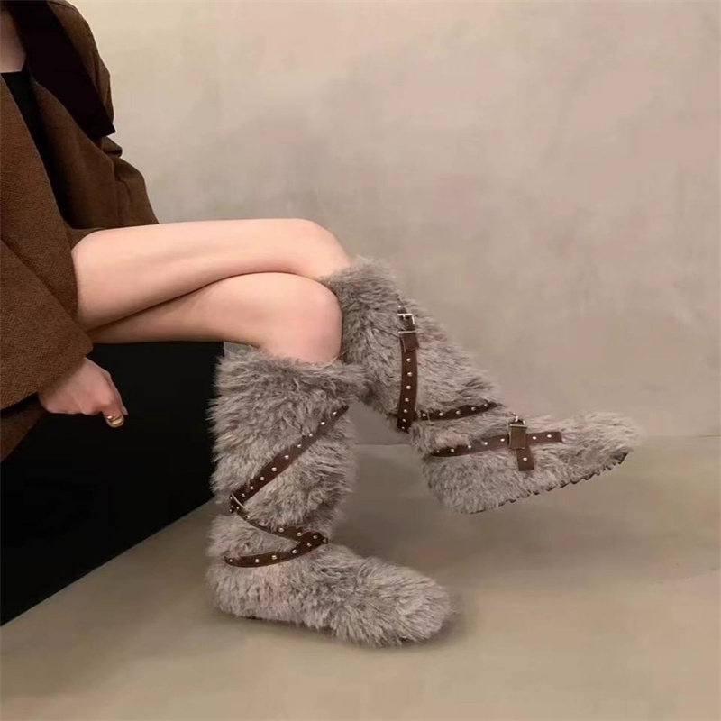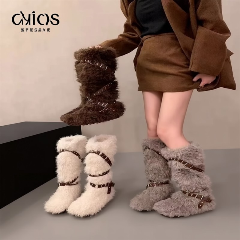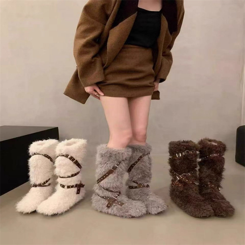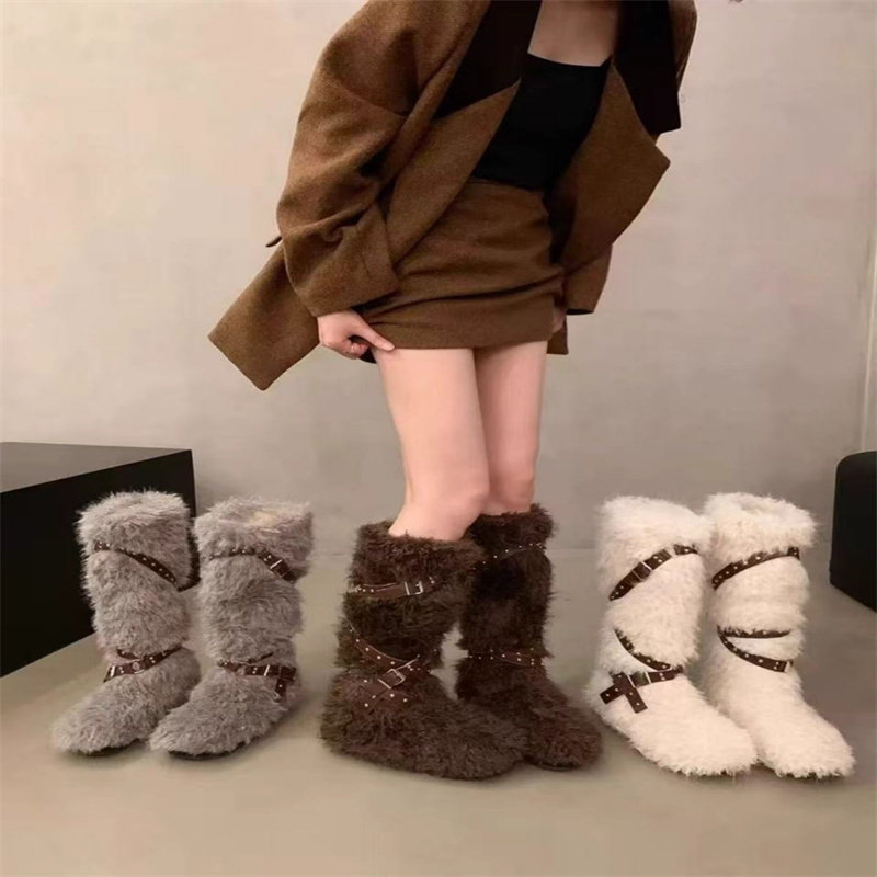 内增高加绒加厚雪地靴女2025新款秋冬季保暖毛毛鞋棉鞋高筒骑士靴