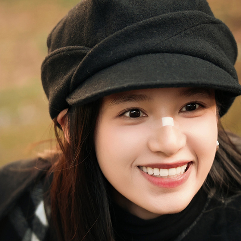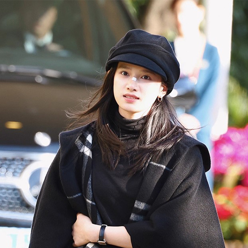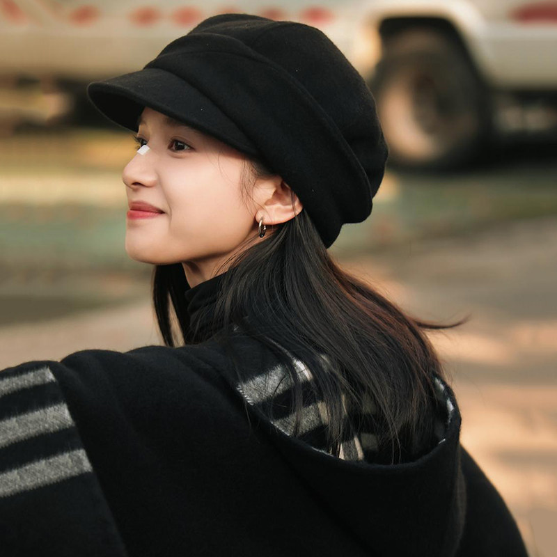 张婧仪同款黑色鸭舌帽女秋冬保暖毛呢贝雷帽高级感复古八角报童帽