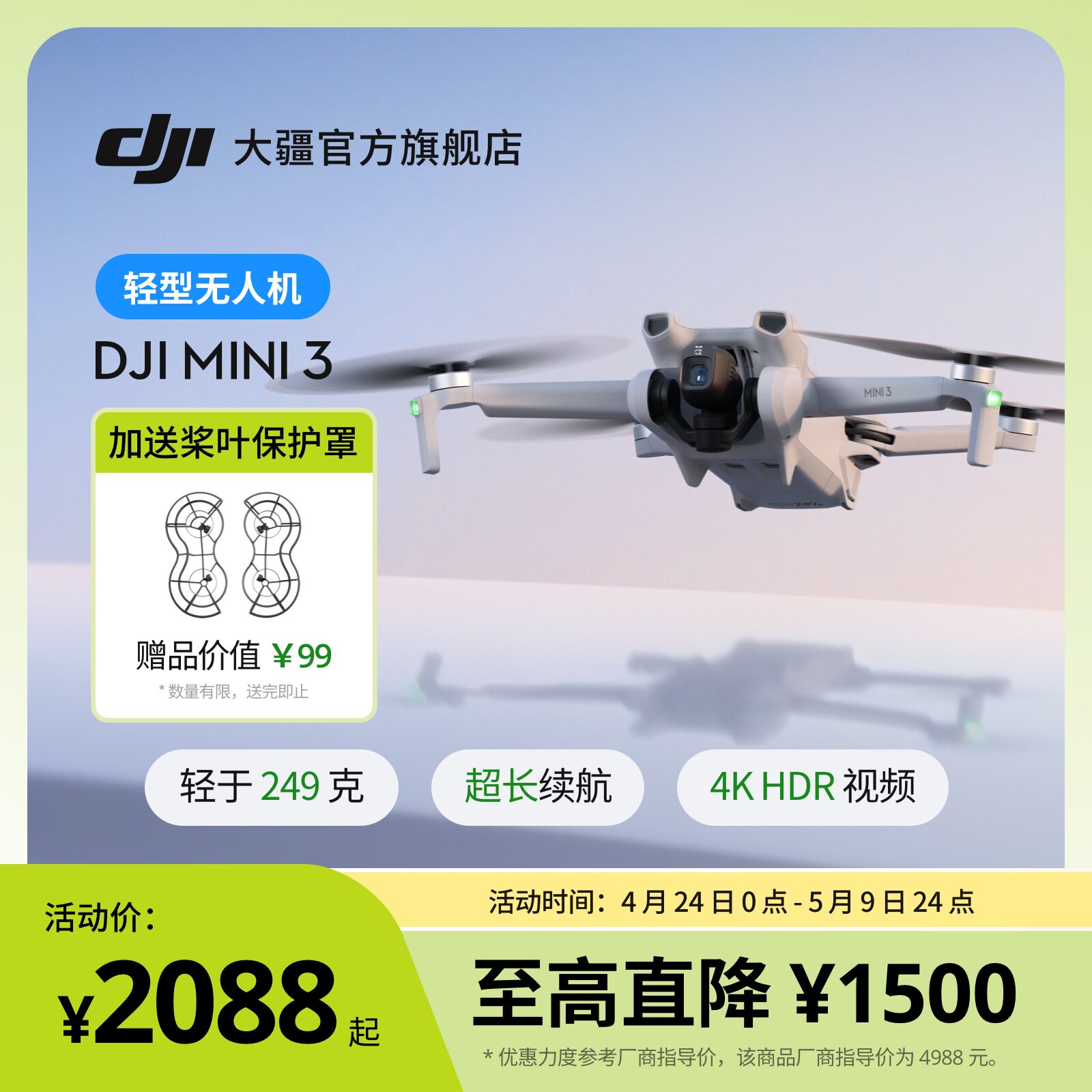 大疆 DJI Mini 4 Pro 全能迷你航拍机 入门级无人机 高清专业无损竖拍 全向主动避障 智能跟随