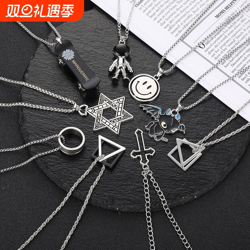 笑脸百搭几何钛钢毛衣链项链ins吊坠男女学生情侣配饰潮长款男士
