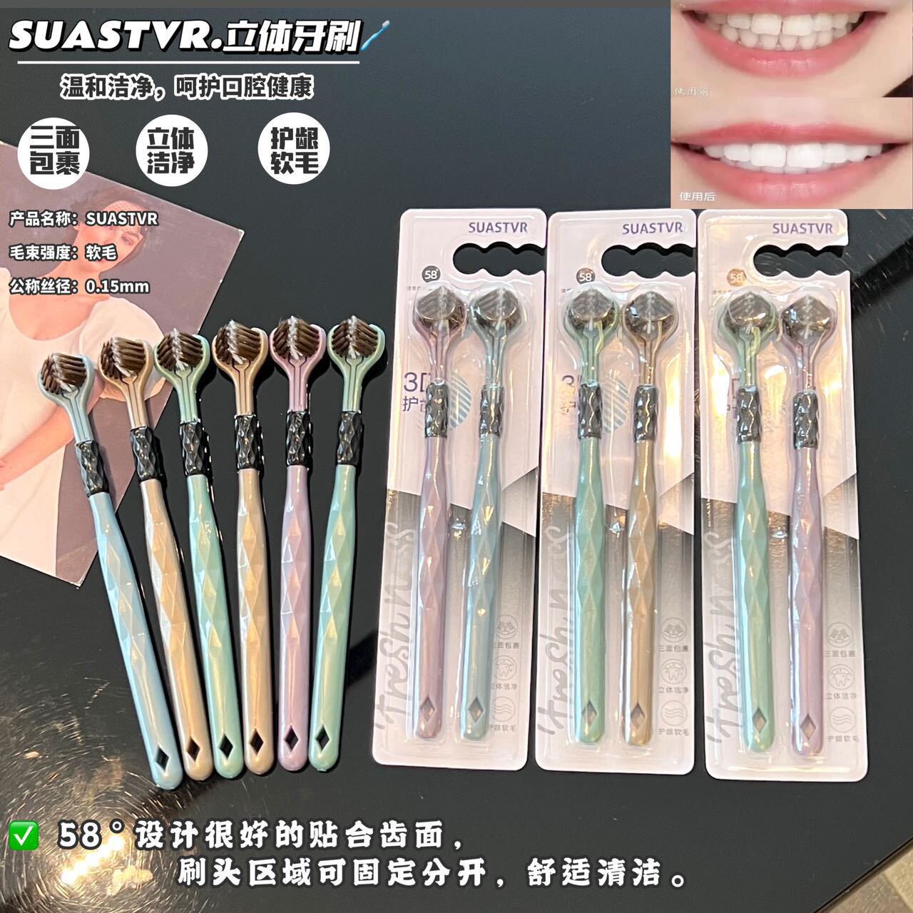 三面牙刷软毛成人家用包裹式清洁三头学生家庭装包裹式牙刷神器
