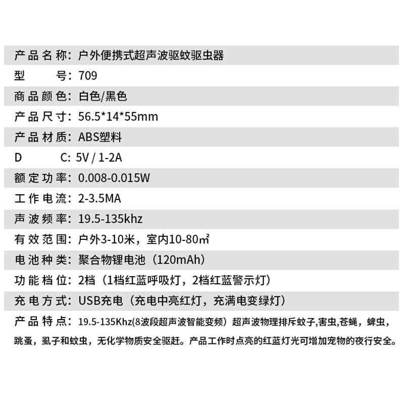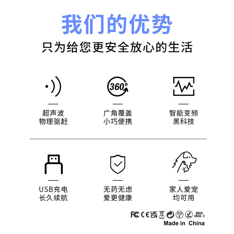 智能变频超声波驱蚊器 户外便携USB充电声波驱赶器电子驱虫器挂扣